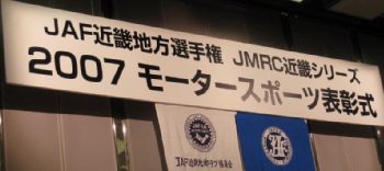 立派な垂れ幕。JAFとJMRCの表彰者、各カテゴリー集合だし、豪勢ね!