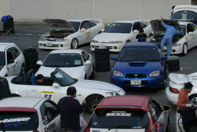 Wizardのみんなとパドックに車を並べて、準備。