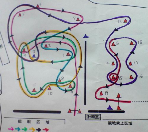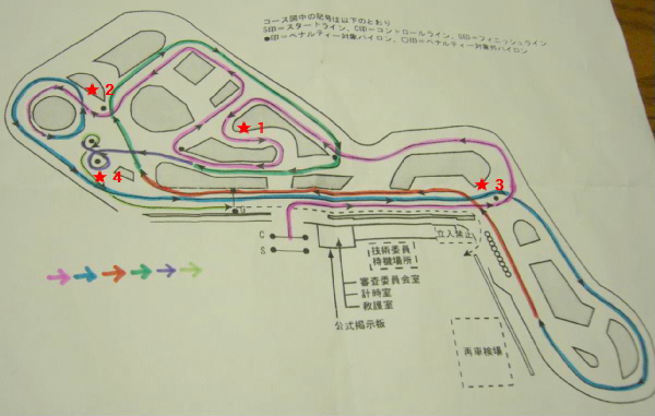 真ん中の1〜4パイロンの侵入方向を間違えないように注意してコースの