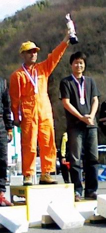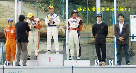 なぜか表彰式の時には、みんなレーシングスーツなのに、