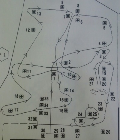 このロングスラローム17-11に戻っていきますが、かあちゃんの歩幅で最初21歩あった間隔が一歩、二歩と短くなっていって11-12の間は15歩しかなかった。